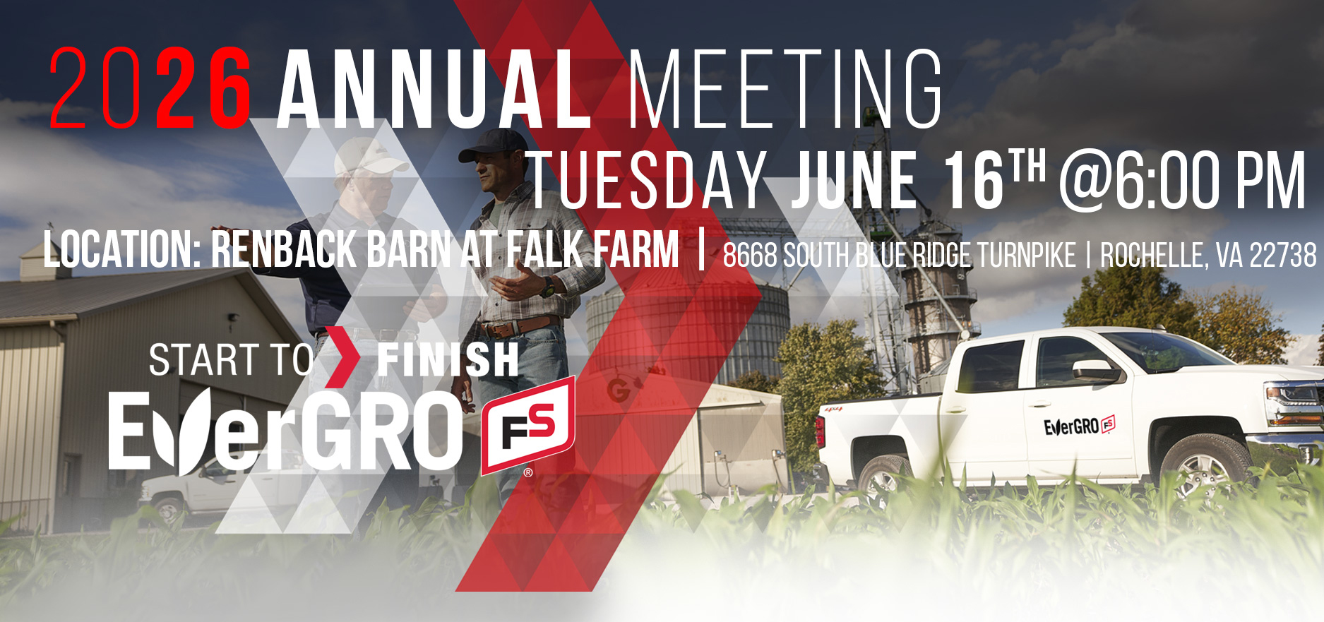 Renback Barn at Falk Farm 8668 South Blue Ridge Turnpike, Rochelle, VA, United StatesJoin EverGRO FS for our 2026 Annual Meeting on Tuesday, June 16th at 6:00PM. We will be reviewing 2025 financials and our many successes over the last year. It will be held at Renback Barn at Falk Farm located near Madison, VA. This event is open to active members as well as the general public....
